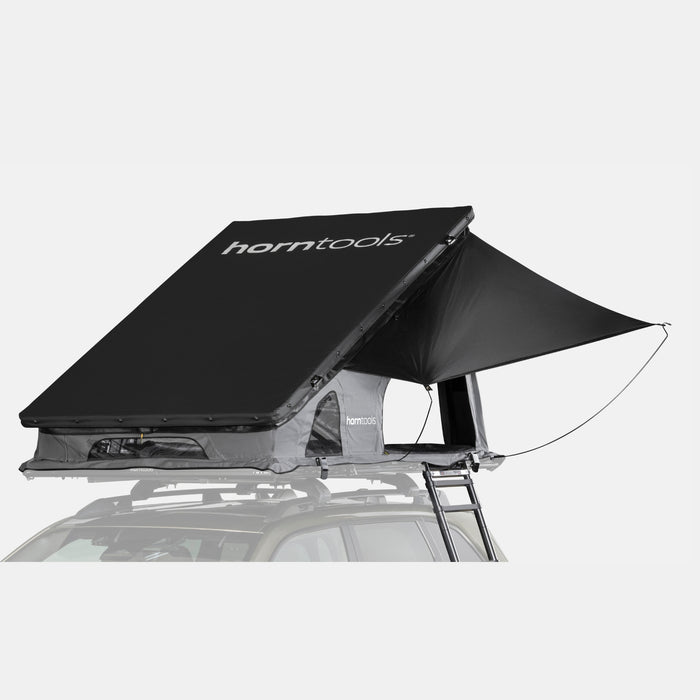 Que vous conduisiez une petite voiture, un SUV ou un camping-car, la nouvelle tente de toit Cloud de horntools, avec son poids plume de seulement 60 kg, s'adapte à presque tous les véhicules. Entièrement repensée, la Cloud est une tente de toit triangulaire en aluminium, conçue en tenant compte de chaque détail important : offrant un espace de couchage confortable de 140 cm², elle convient à 2 ou 3 personnes et, une fois repliée, ne mesure que 12,5 cm de haut. Les 25 cm de hauteur supplémentaires au niveau des pieds offrent un confort accru. Outre l'entrée, la tente de toit triangulaire est équipée de quatre fenêtres, chacune munie d'une moustiquaire.